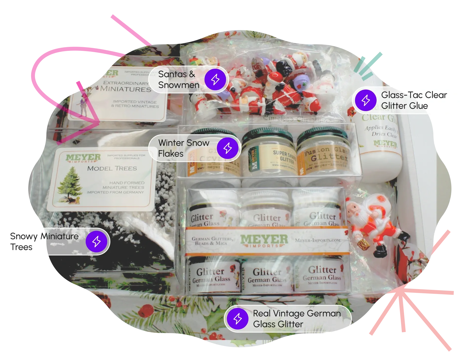 Find everything you need to bring the holiday magic to life — from sparkling glitters to charming mini trees and festive boxes.