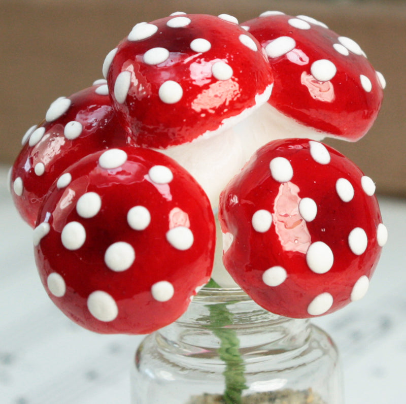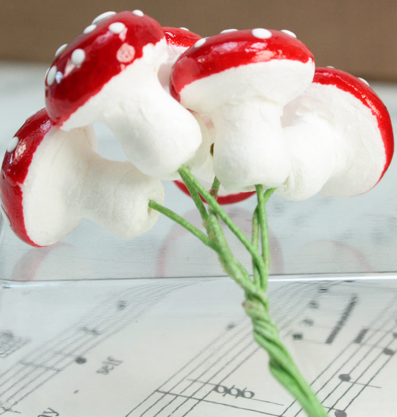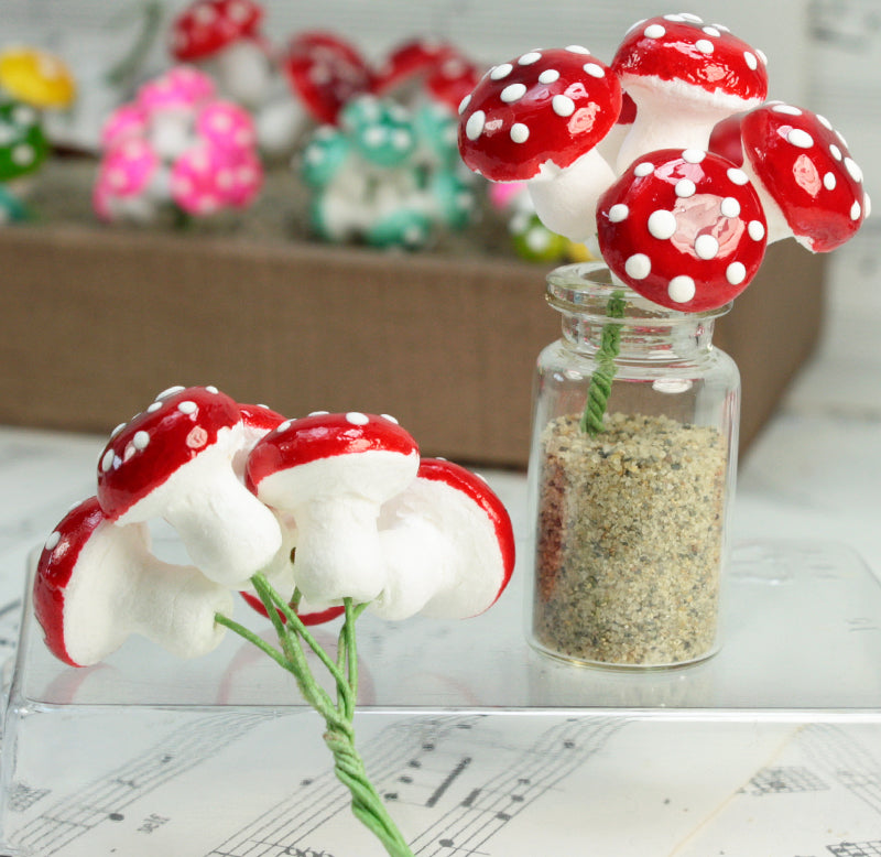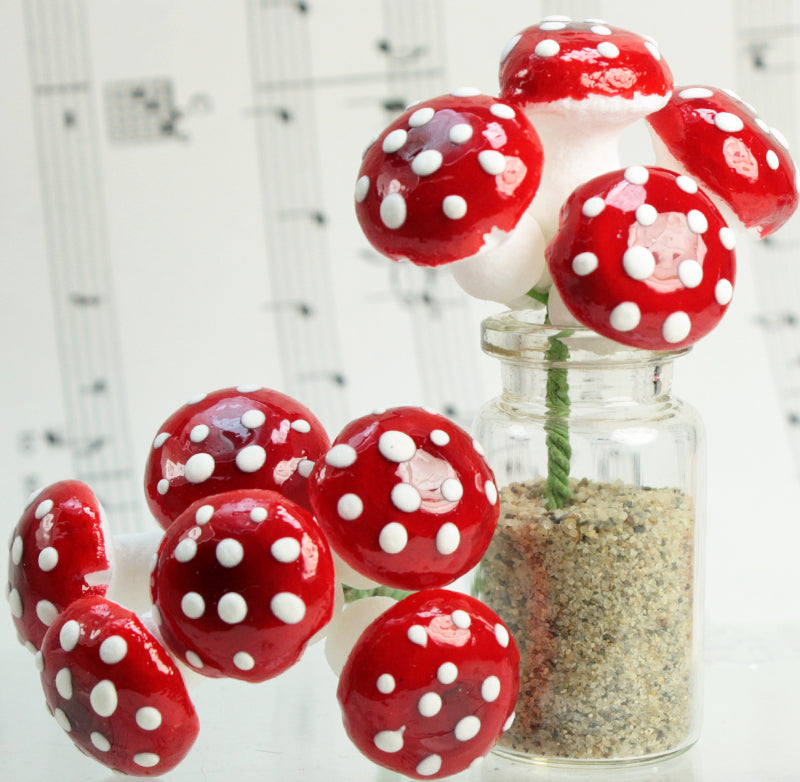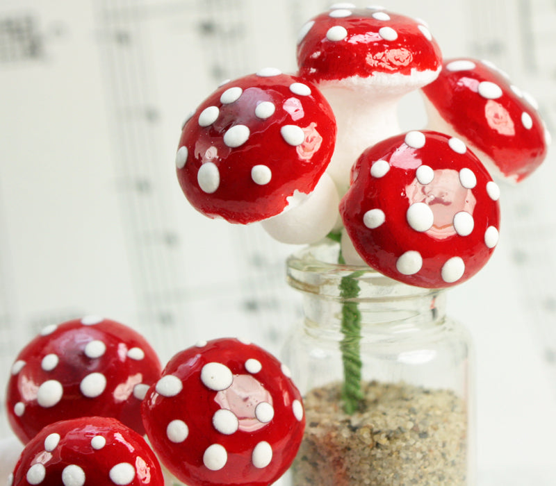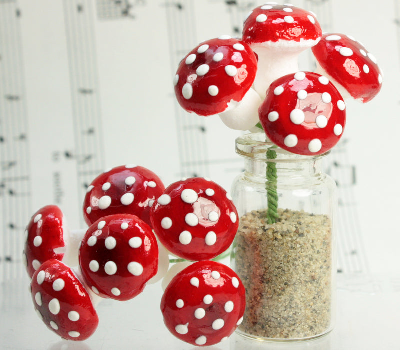 Red - Large Cotton Spun Mushrooms- Set of 10 - 5/8" - 703-1800